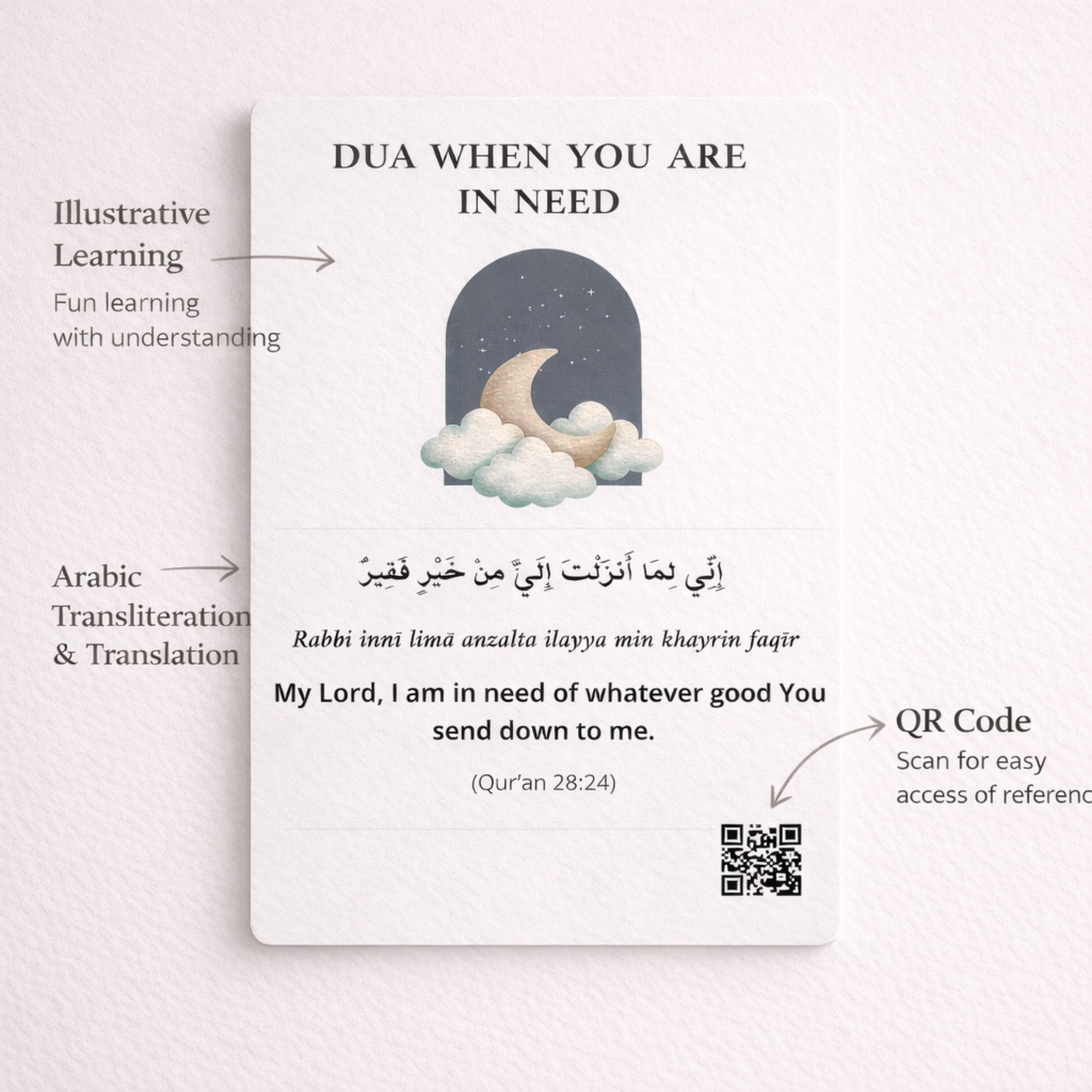 Each card is thoughtfully designed to remove confusion and bring clarity to what you’re asking Allah for.