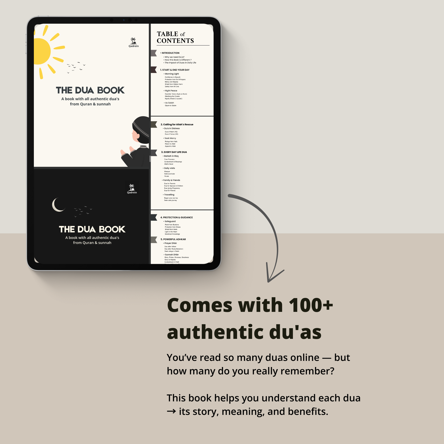 A tracker that helps you be consistent with the dua book and complete it with understanding.